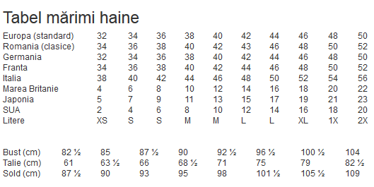 Tabel cu mărimi haine